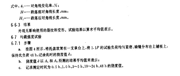 6.3.3 卸載后,外觀應(yīng)無影響使用的裂紋和變形。試驗結(jié)果以算術(shù)平均值表示。